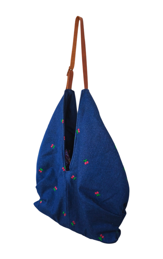 DARK CHERRY JEAN HOBO SHOULDER BAG