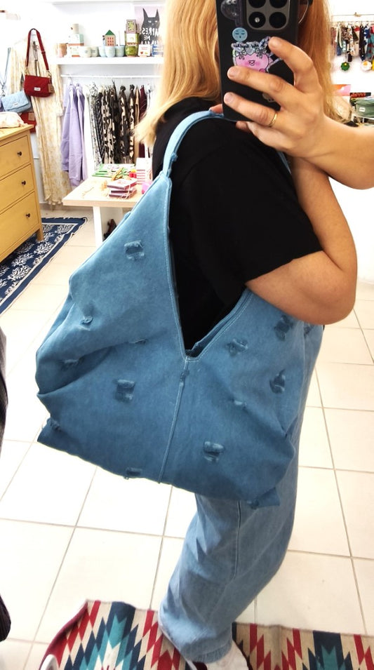 BLUE RIPPED JEAN HOBO SHOULDER BAG