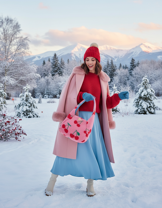 CHERRY TEDDY DUMPLING POUCH BAG - MEDIUM