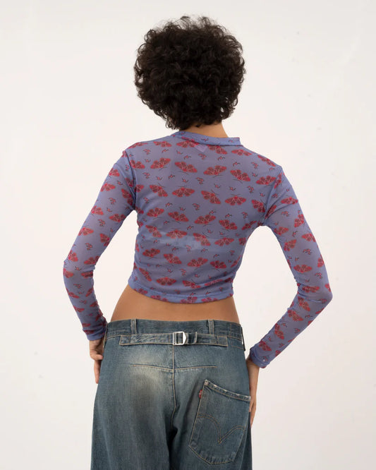 Moth Print - Baby Blue Mesh Top
