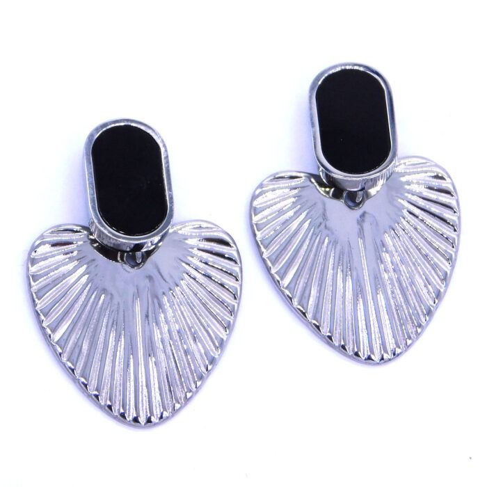 Σκουλαρίκια διαστάσεων 32x22mm από 316L ανοξείδωτο ατσάλι με κρεμαστή καρδιά και στοιχείο από μαύρο σμάλτο.