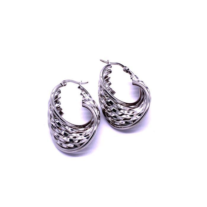 Ατσάλινα σκουλαρίκια εξαπλός κρίκος πλάτους 25mm, ύψους 40mm πάχους 4-14mm.
