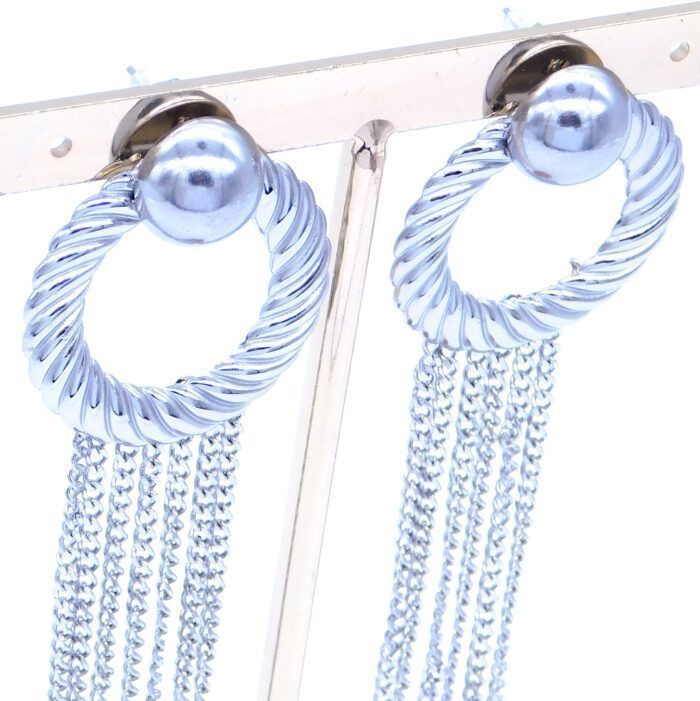 Σκουλαρίκια από 316L χειρουργικό ατσάλι με στεφάνι διαμέτρου 3cm και κρεμαστές αλυσίδες μήκους 5cmm. Τα συγκεκριμένα ατσάλινα κοσμήματα κατασκευάζονται αποκλειστικά από ατσάλι καθαρότητας χειρουργικού επιπέδου προσδίδοντας τους μόνιμα αντιδιαβρωτικές και αντιαλλεργικές ιδιότητες ανεξαρτήτως της πάροδου του χρόνου ή την όποια χρήση τους.