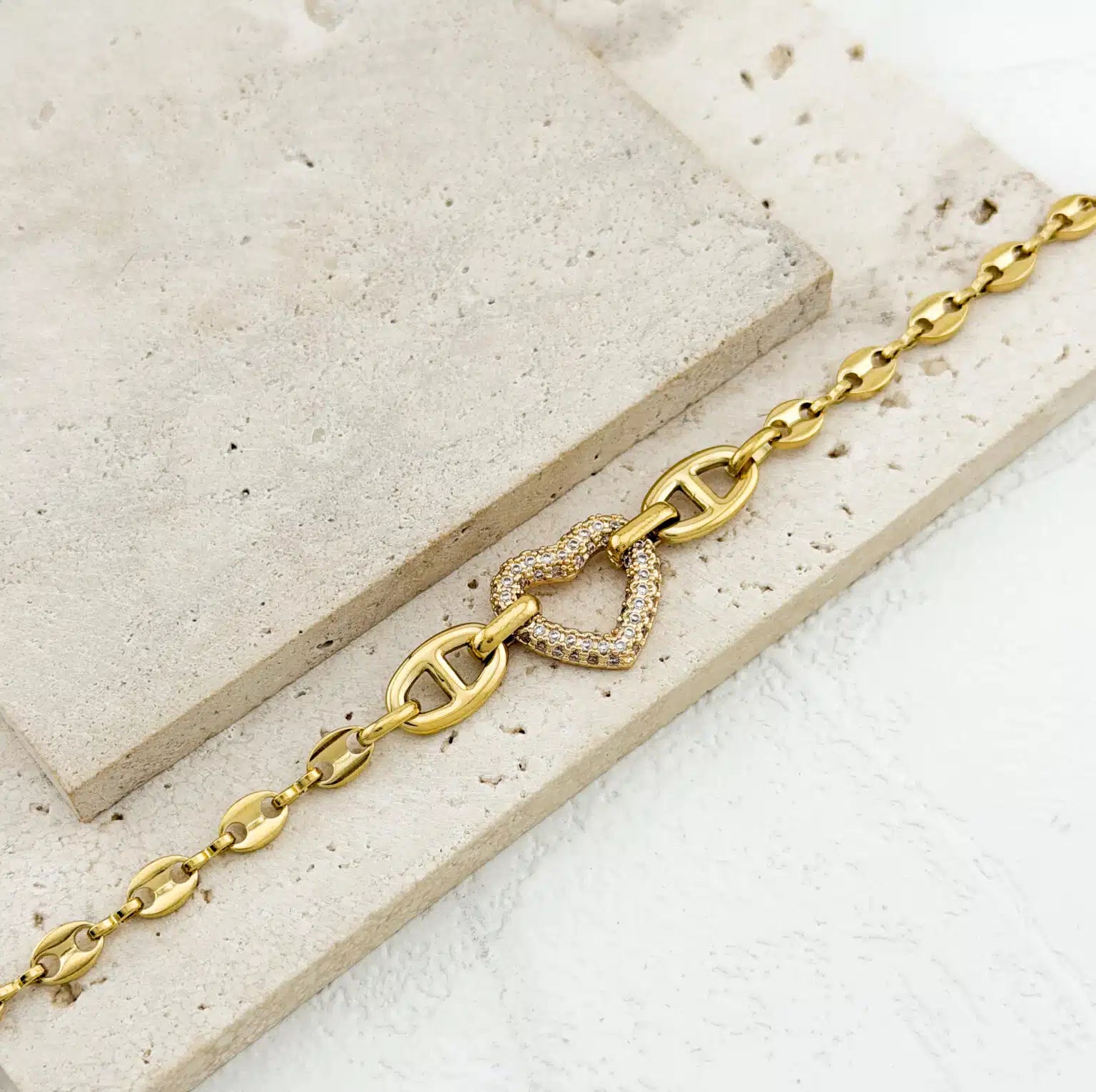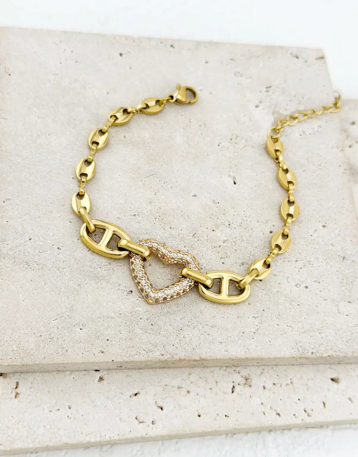 Ατσάλινο βραχιόλι Καρδιά Στρασάκια
