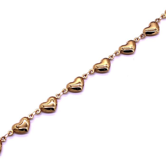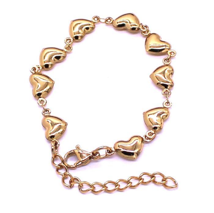 Χρυσό βραχιόλι από αλυσίδα με πομπέ καρδιές 8x10mm από ανοξείδωτο ατσάλι. Μήκος βραχιολιού 17cm και 5cm αλυσίδα επέκτασης.