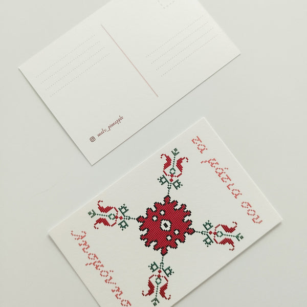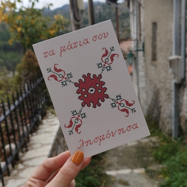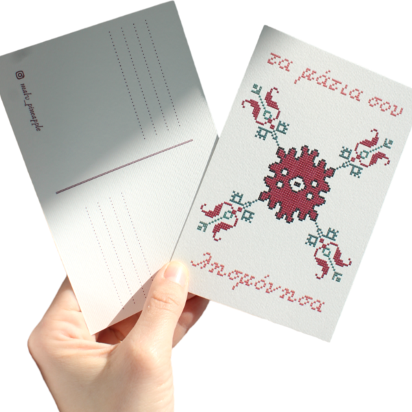 Κάρτα αλληλογραφίας σε υπόλευκο ανάγλυφο χαρτί. Η εκτύπωση είναι ψηφιακή υψηλής ποιότητας.