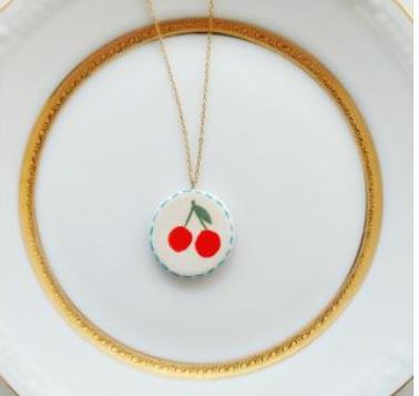 Χειροποίητα κεραμικό και αλυσίδα από χρυσό ατσάλι.