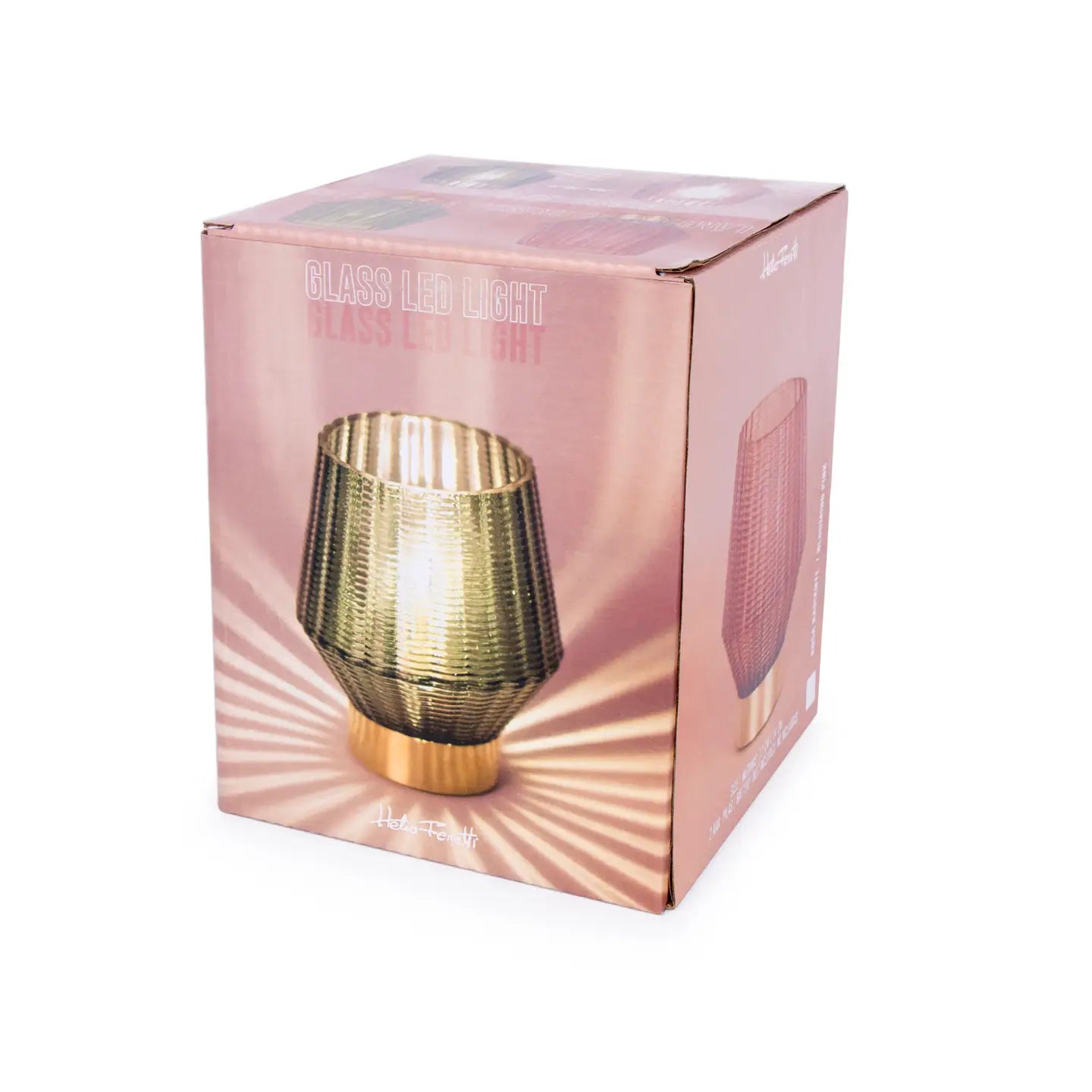 Κρυστάλλινο φωτιστικό με χρυσή βάση. Λειτουργεί με 2 μπαταρίες AAA και διαθέτει κουμπί ON / OFF στη βάση. Διατίθενται δύο χρώματα: πράσινο και μωβ ροζ.