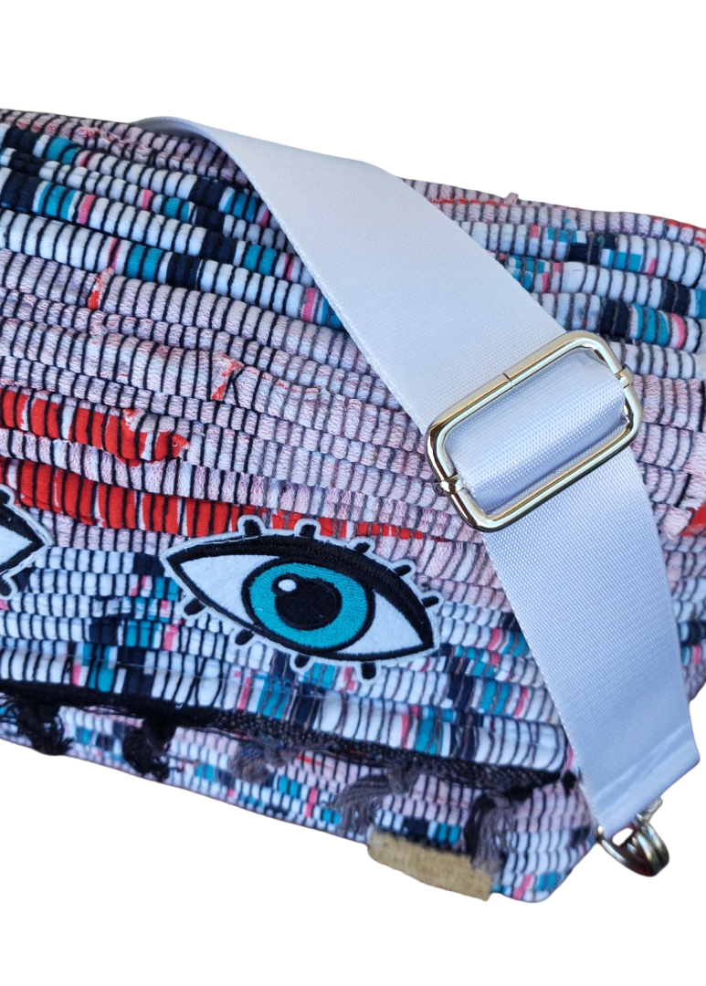 Κάθε τσάντα είναι χειροποίητη και μοναδική και είναι κατασκευασμένη από κουρέλου. Αυτό κάνει κάθε τσάντα μοναδική και μπορεί να έχει διαφορές χρώματος από τις φωτογραφίες.