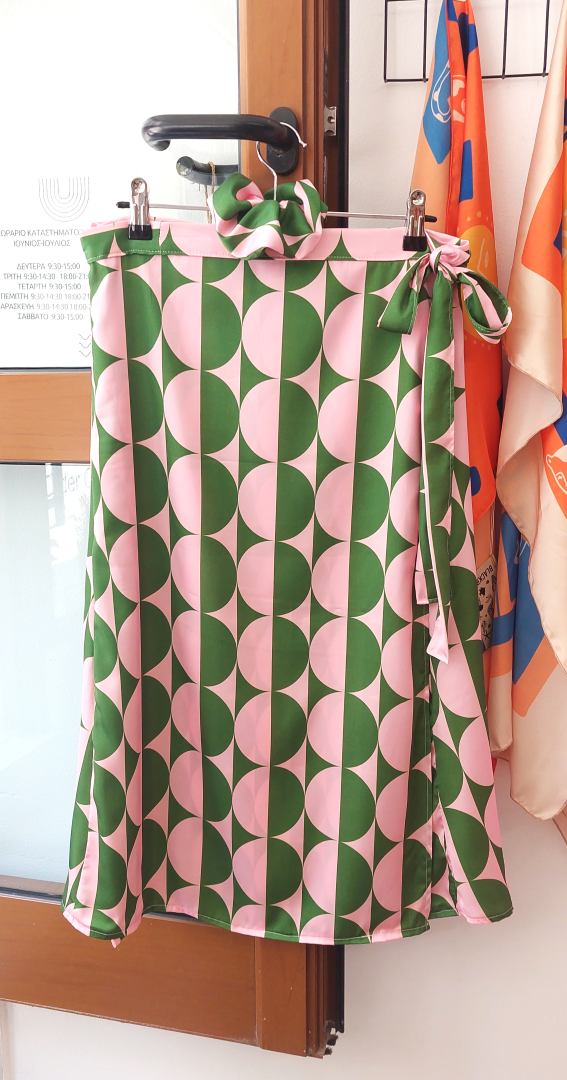 Δετή φούστα από ένα υπέροχο, μαλάκο και ανάλαφρο ύφασμα, τύπου σατέν.