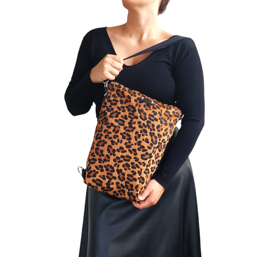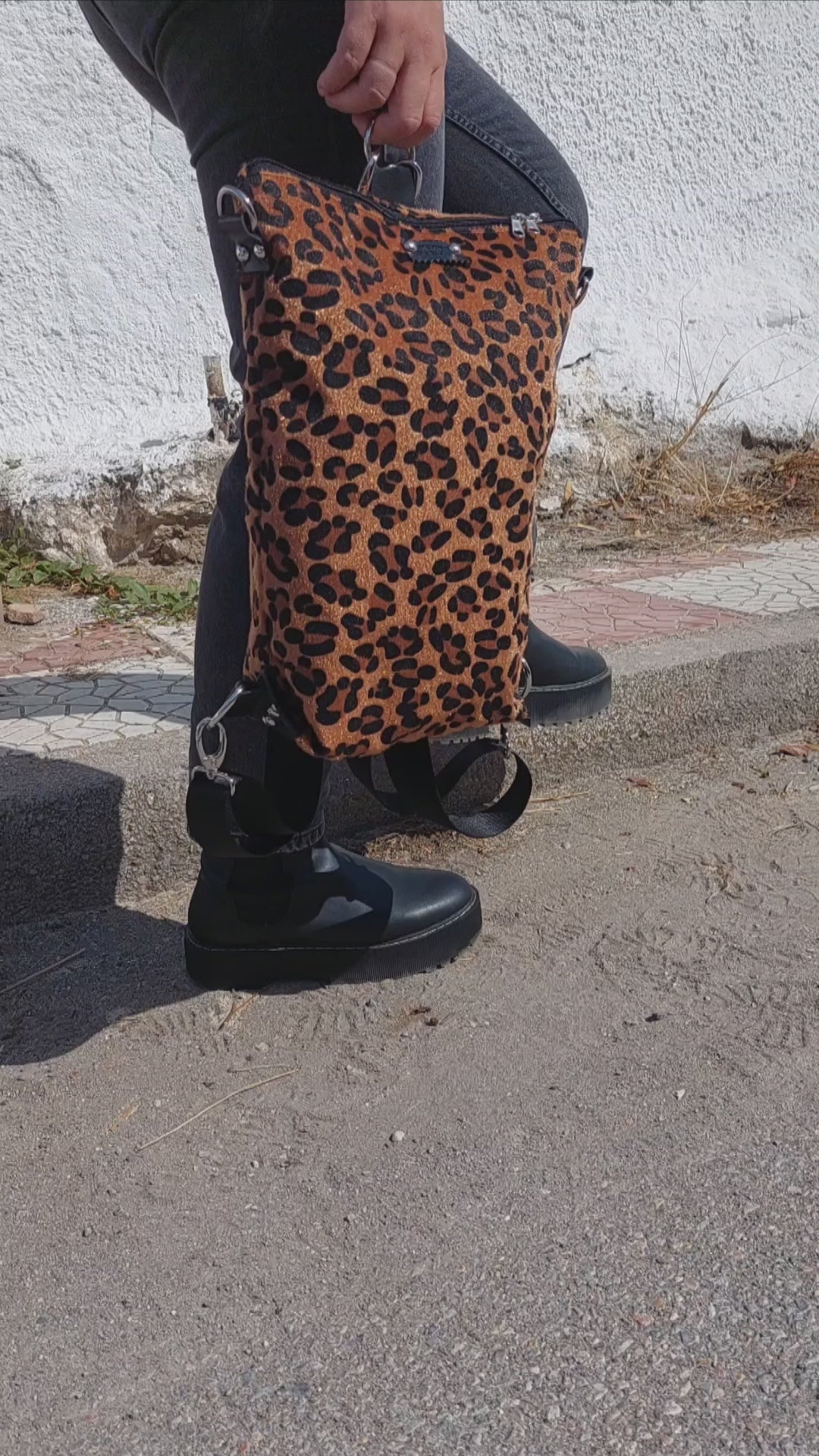 Σακίδιο μεσαίου μεγέθους animal print με εσωτερική τσέπη με φερμουάρ και αποσπώμενους ιμάντες, που μπορεί να χρησιμοποιηθεί και σαν τσάντα ώμου.