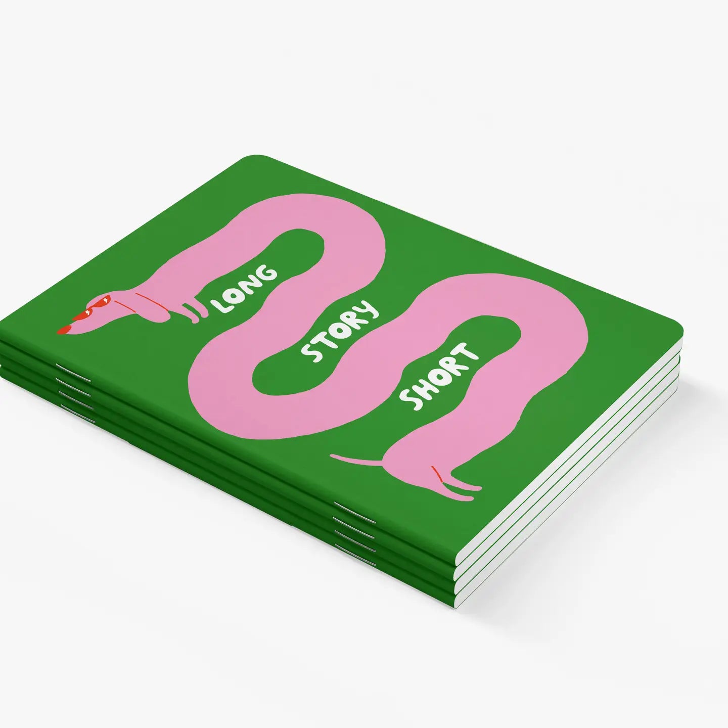 Staple stitching (particularly durable and lays flat). Sturdy envelope made of natural paper (matt, 300 g/m²), printed. Inner pages made of cream-colored uncoated paper (matt, 80 g/m²), blank. Rounded edges.