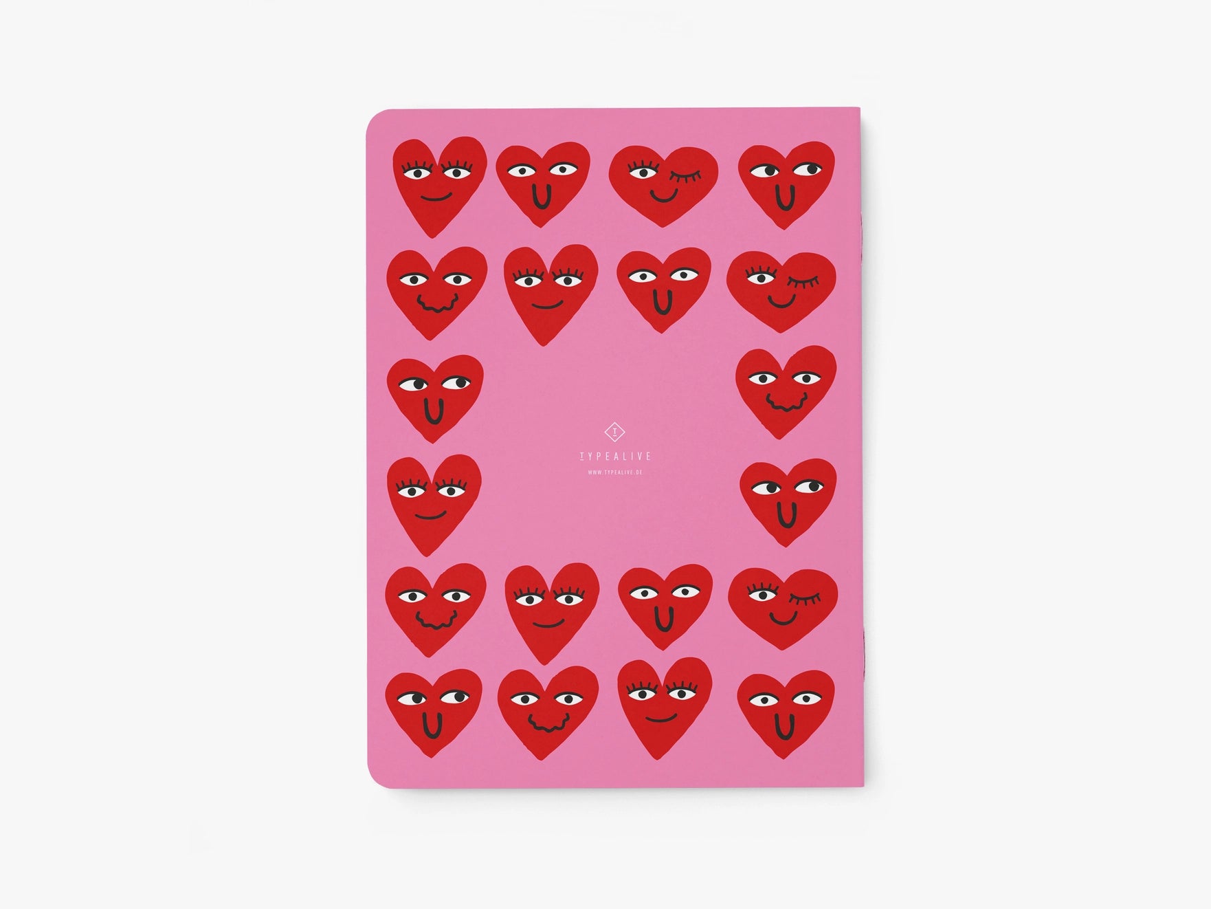 Staple stitching (particularly durable and lays flat). Sturdy envelope made of natural paper (matt, 300 g/m²), printed. Inner pages made of cream-colored uncoated paper (matt, 80 g/m²), blank. Rounded edges.