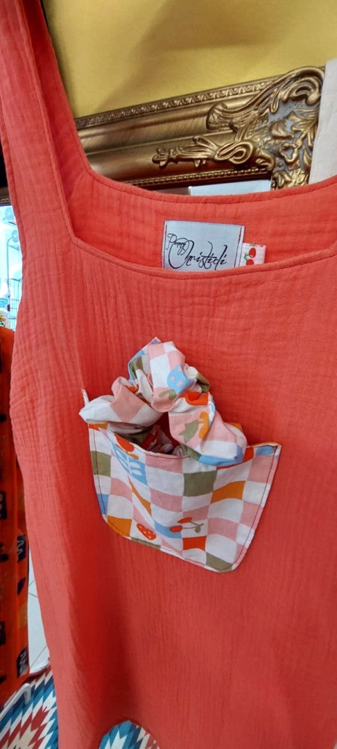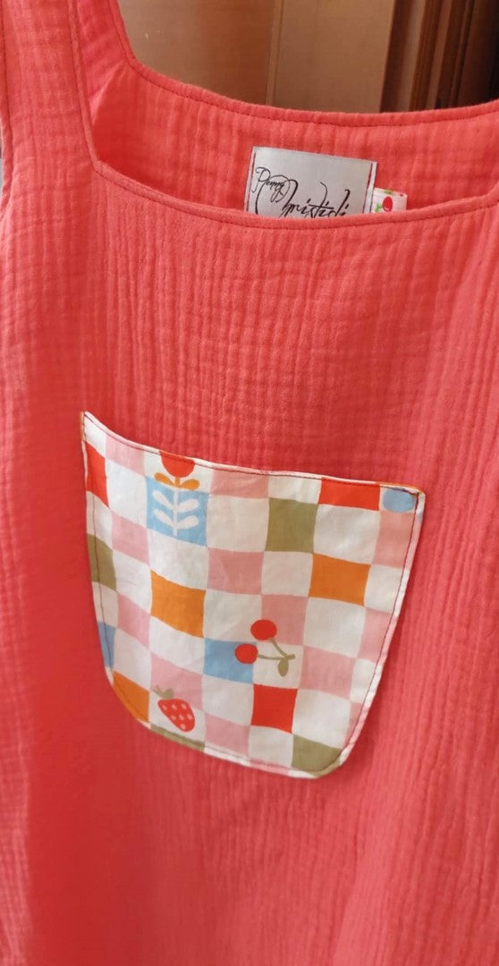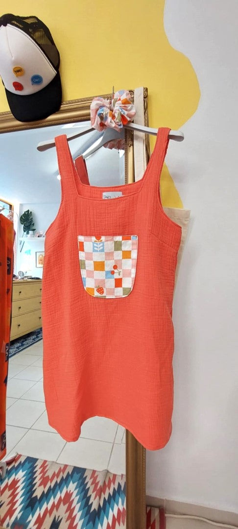 Βαμβακερό φόρεμα πολύχρωμο. Μίνι. Με τσέπη μπροστινή τσέπη.