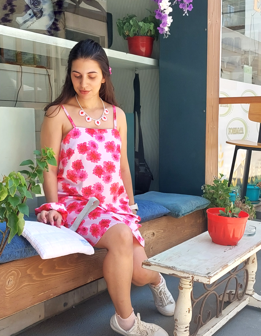 Mini φόρεμα πολύχρωμο. Τύπου σατέν.