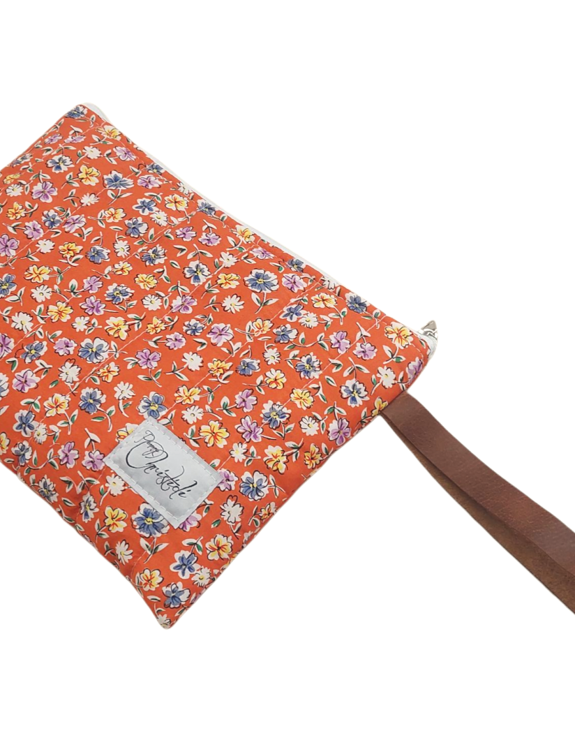 ROSES ZIPPER POUCH WITH LEATHER STRAP