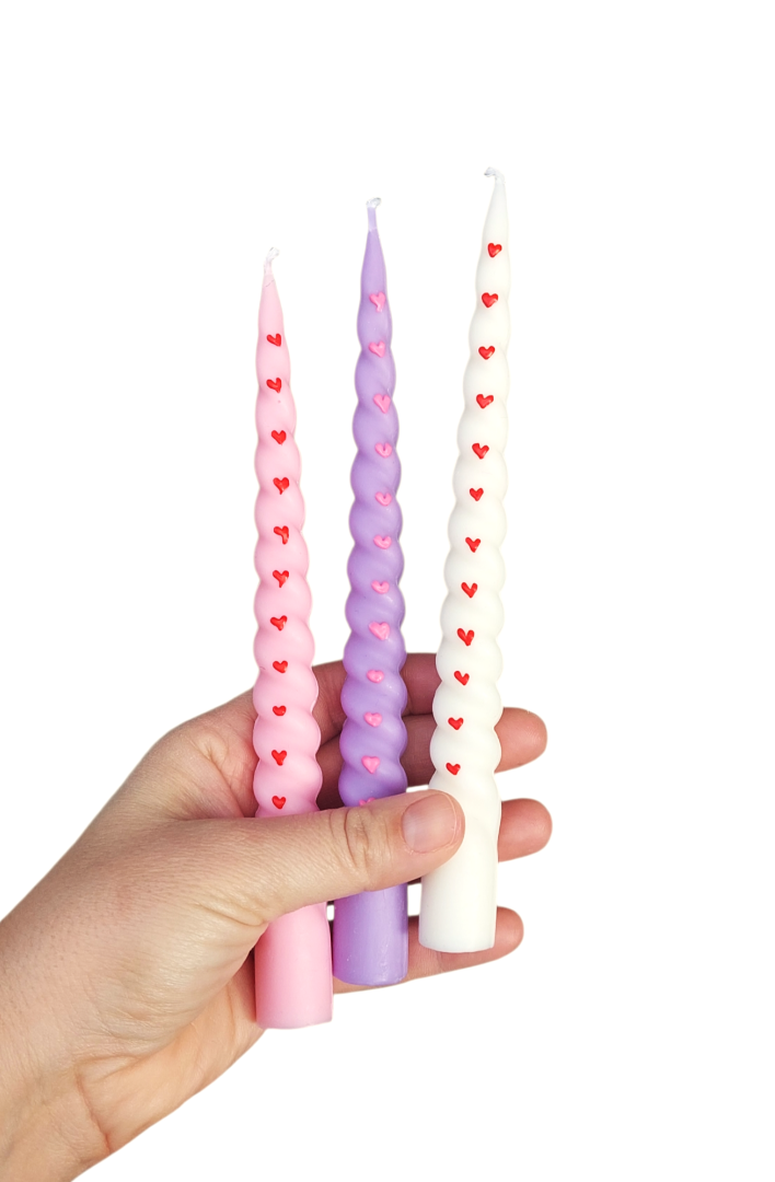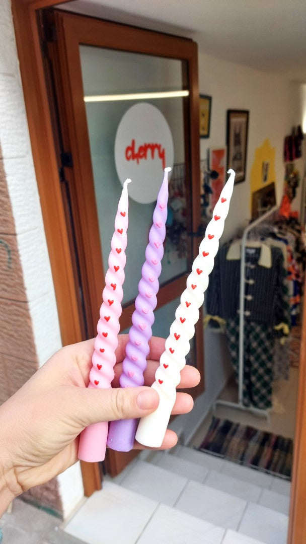 Spiral Candle with Hearts 19cm