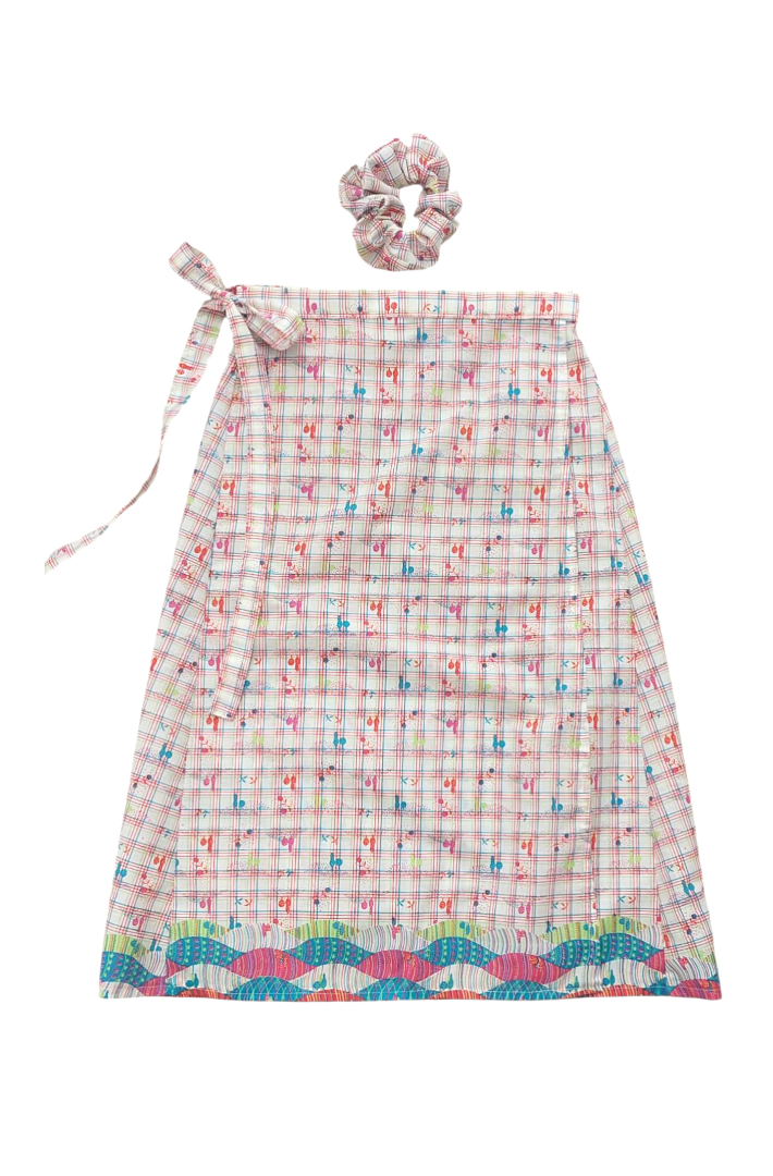 Βαμβακερή πολύχρωμη ριγέ μακριά δετή φούστα.