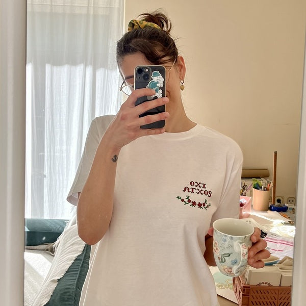 Το «ΟΧΙ ΑΓΧΟΣ» που όλους μας ενώνει, εκτυπώθηκε σε t shirt από οργανικό βαμβάκι με χειροποίητη μεταξοτυπία 2 χρωμάτων στην Αθήνα. Η μπλούζα είναι unisex και εχει κανονική εφαρμογή.