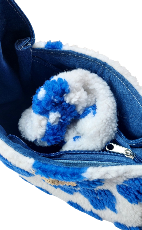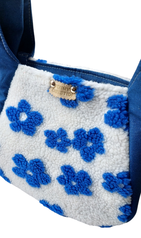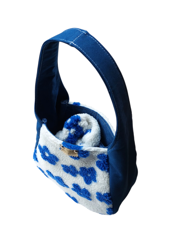 Χειροποίητη τσάντα ώμου με εσωτερικές τσέπες. Κλείνει εσωτερικά με φερμουάρ.