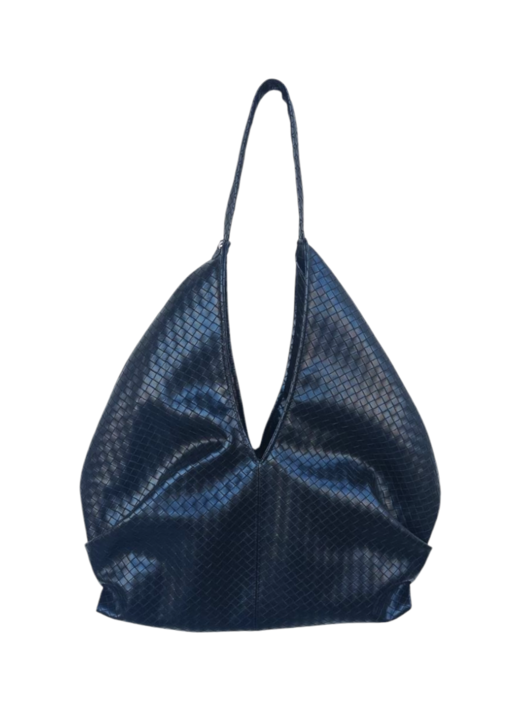 Τσάντα ώμου από πλεχτή μαύρη δερματίνη. Κλείνει με μαγνητική σούστα.