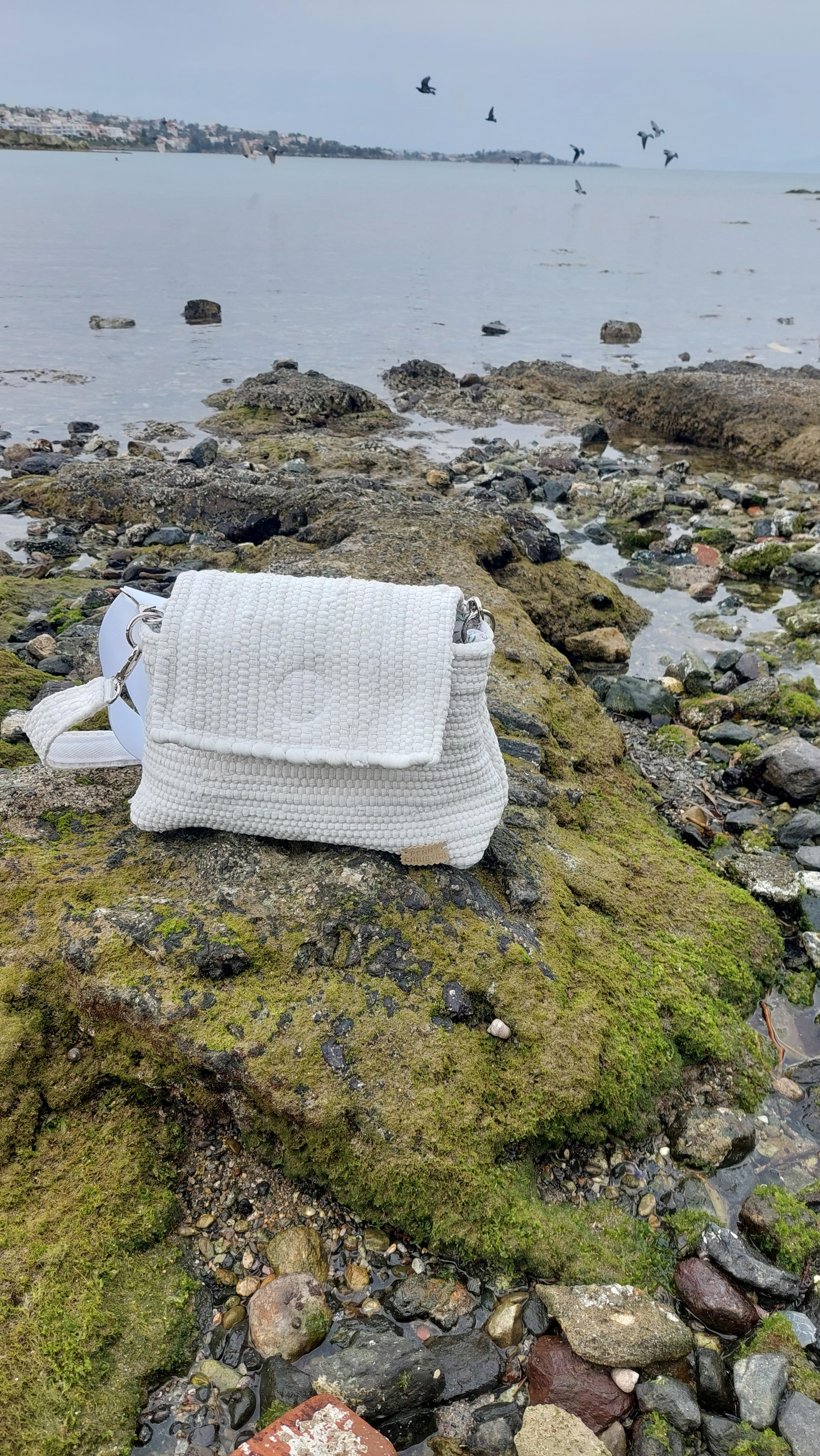 Κάθε τσάντα είναι χειροποίητη και μοναδική και είναι κατασκευασμένη από κουρέλου. Αυτό κάνει κάθε τσάντα μοναδική και μπορεί να έχει διαφορές χρώματος από τις φωτογραφίες.
